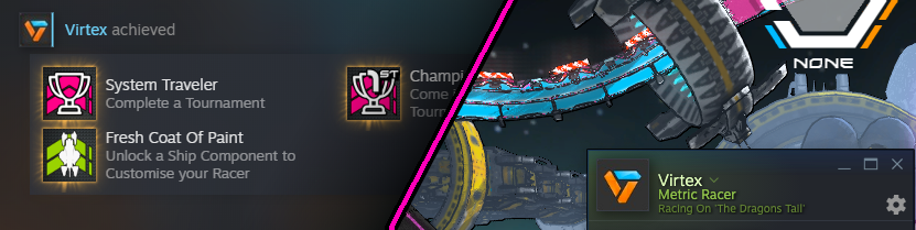 Show you are the top racer with Steam Achievements in Metric Racer. This challenges you to make it to first place in every mode to truly prove you are the best. Not only be the fastest on the track, show you are the fastest. Along with Steam Achievements is Steam Rich Presense which will let your friends see where you’re racing in Metric! This is in preperation for Networked Multiplayer coming to v0.8.6!