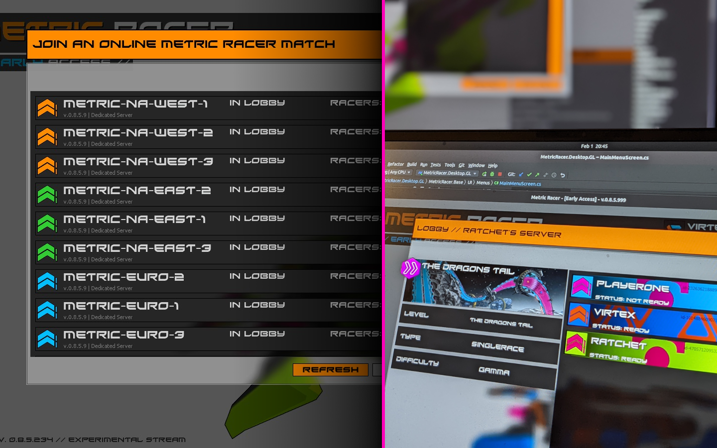 Network multiplayer is out now! Race with or against your friends either through multiple Dedicated Servers or locally across LAN. There are 4 sets of dedicated servers: