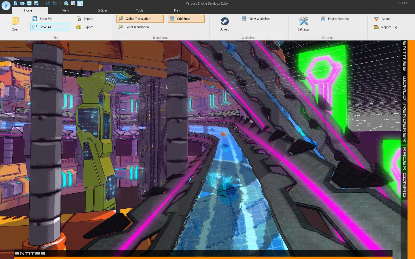 There’s been a number of editor improvements, new track entities and track themes to customise your own tracks with. I’ve also added a tool tips that guide players on the Editor Workflow as well as an option to fill in tracks now. Pressing Ctrl+B while having two end nodes selected will bridge the gap.